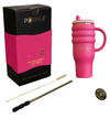 Press-Pop Straw™*: Designed to allow you the comfort and cleanliness of a stand-alone straw, while also being stored within the tumbler, ready to 'pop-up' when the twist-on magnetic cap is removed.