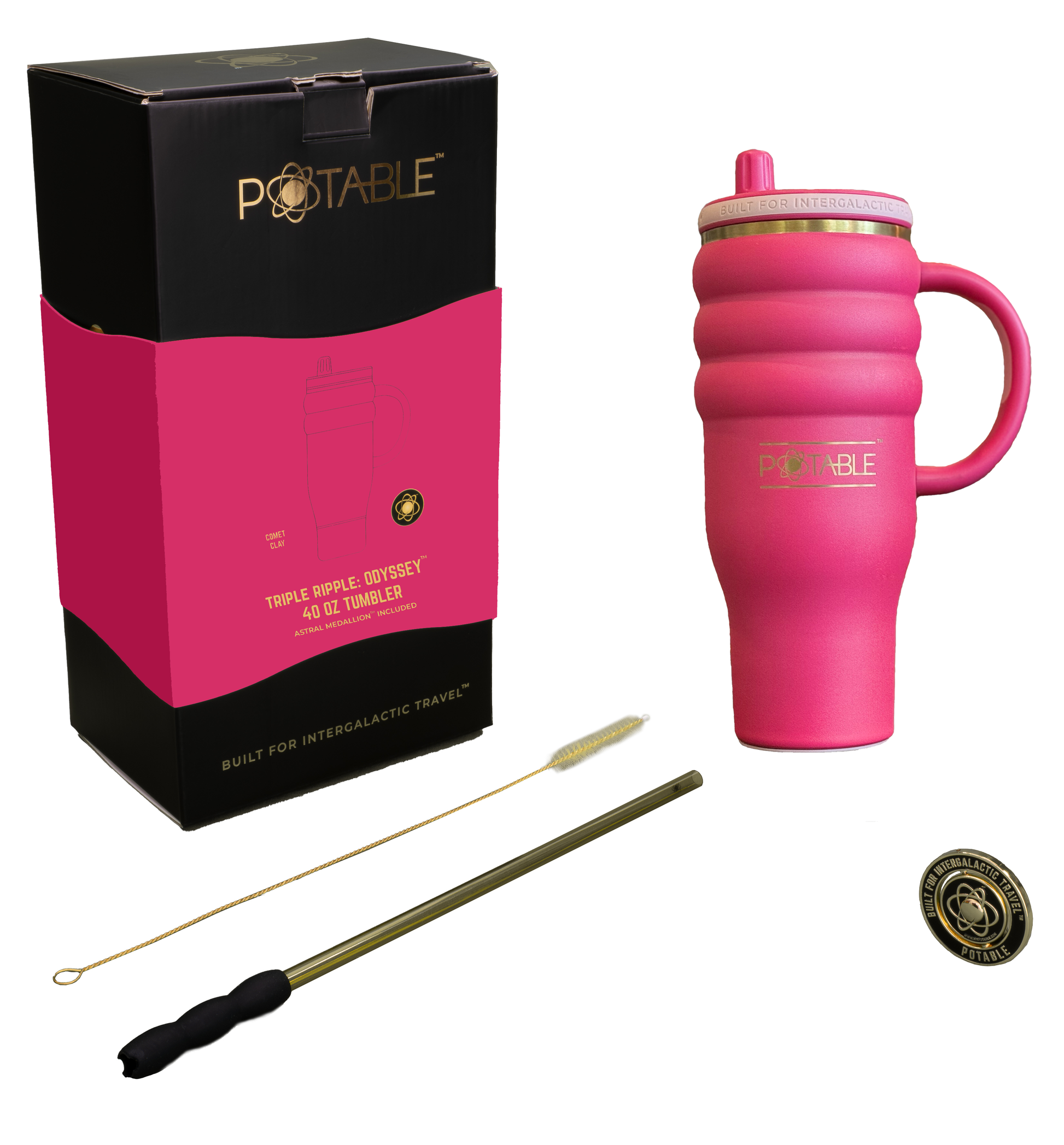 Unwrap warmth and wonder with the Triple Ripple: Odyssey™ in Scarlet Dusk, a bold pink-crimson hue that embodies the spirit of the season. Designed with Potable’s™ signature Triple Ripple™ body, it’s equal parts art and engineering—an insulated travel tumbler that keeps your drinks perfect for hours. Make your holiday table or travels shimmer with style and substance.