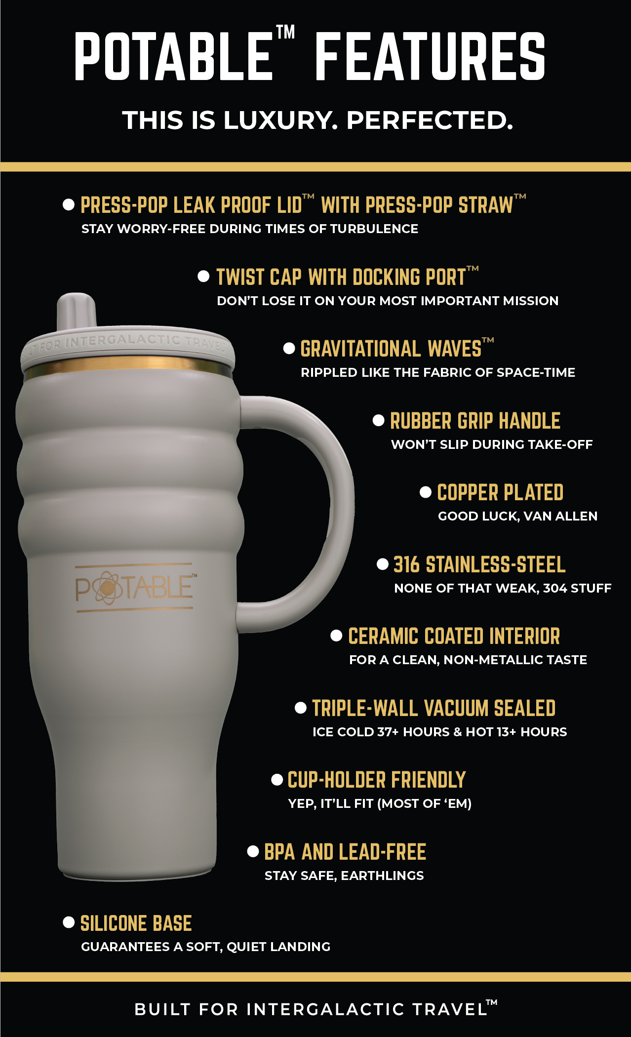 Potable™ tumbler are unique. On this page, you can explore Potable's unique features and learn how to use the Press-Pop Straw™ in the video below.