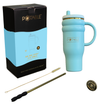 Press-Pop Straw™*: Designed to allow you the comfort and cleanliness of a stand-alone straw, while also being stored within the tumbler, ready to 'pop-up' when the twist-on cap is removed.